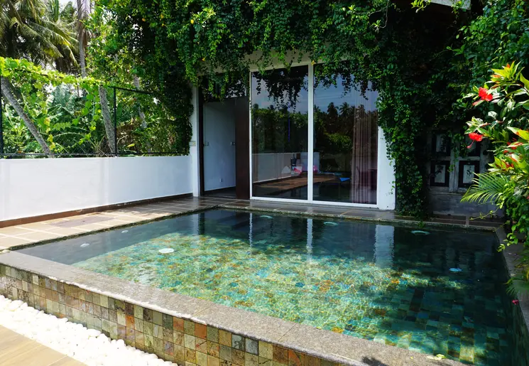 Een kleinschalige accommodatie met vijf villa’s met een eigen plungepool. Vanaf je terras heb je uitzicht over de Gin Oya rivier. Rustig verblijf in een groene omgeving. Kijk niet gek op als je een varanen, gecko’s en vleermuizen in de tuin spot.