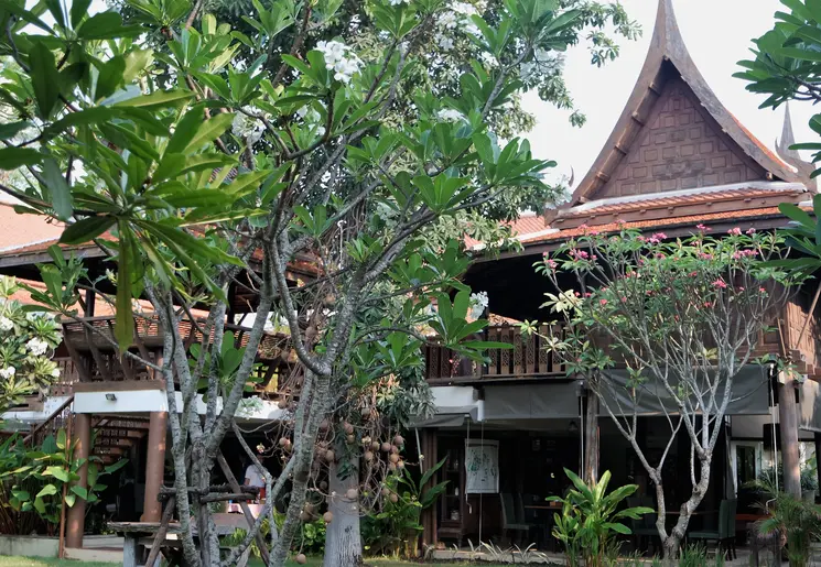De ligging in een rustig straatje, net buiten het centrum van de stad is prettig. Al wandelend ben je toch zo op de nachtmarkt of bij gezellige restaurantjes. Er staat een grote Yang boom op het terrein die fijne schaduw biedt. Vooral ’s avonds is het erg romantisch tijdens een dinertje onder de boom.