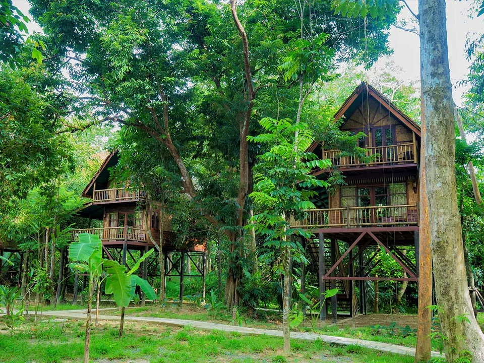 Het resort is ruim opgezet, in de jungle zijn wandelpaden die de boomhutten met elkaar verbinden. Deze boomhutten zijn gebouwd op palen, waardoor de huisjes zicht tussen de takken en bladeren van de bomen bevinden.