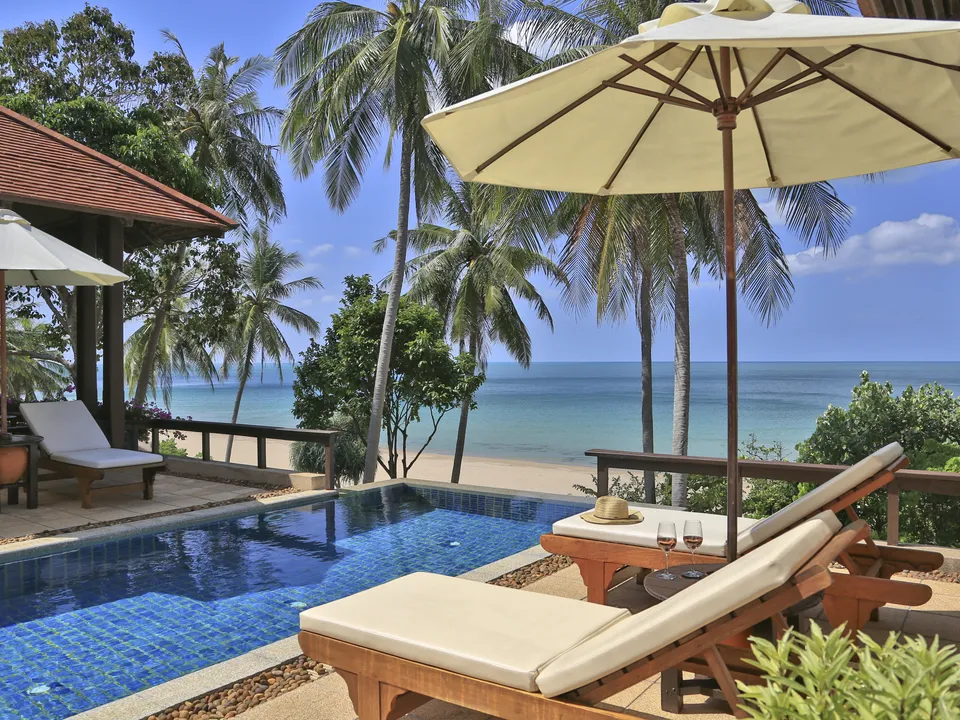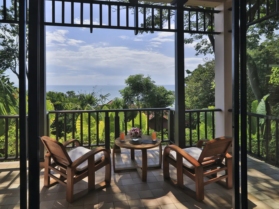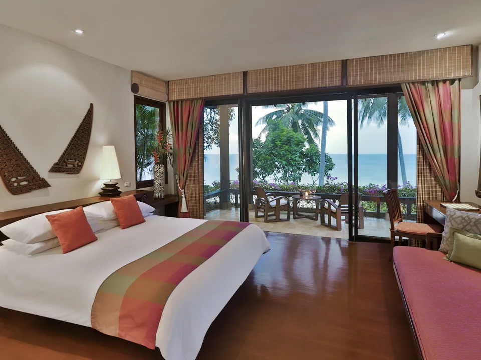De 122 ruime en fraai in Thaise stijl gedecoreerde kamers zijn verdeeld over 2 gedeeltes. De meest gebruikelijke kamertypes liggen in het gedeelte aan zee. Boven op de berg, te bereiken met de golfkarretjes die er rijden, liggen de luxere kamertypes en villa’s met meerdere slaapkamers.