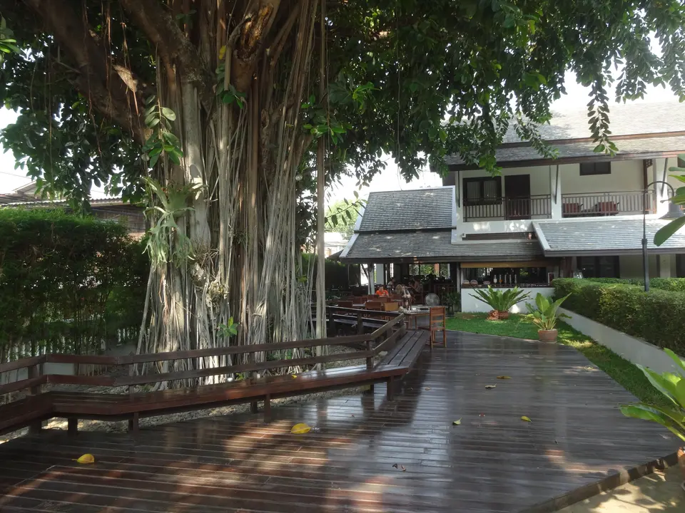 De ligging in een rustig straatje, net buiten het centrum van de stad is prettig. Al wandelend ben je toch zo op de nachtmarkt of bij gezellige restaurantjes. Er staat een grote Yang boom op het terrein die fijne schaduw biedt. Vooral ’s avonds is het erg romantisch tijdens een dinertje onder de boom.