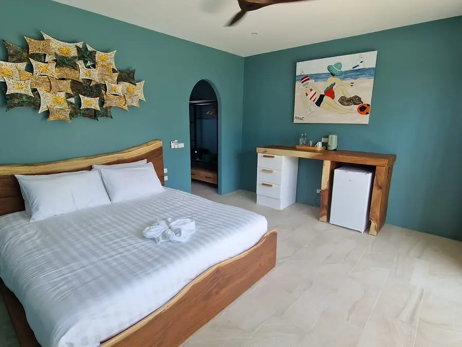 De kamers beschikken over een terras met zitje, airconditioning, kluisje, een minibar en een badkamer met douche, toilet en haardroger. De kamers kijken uit op de tuin en de Beach villa ligt het dichtst bij het strand.