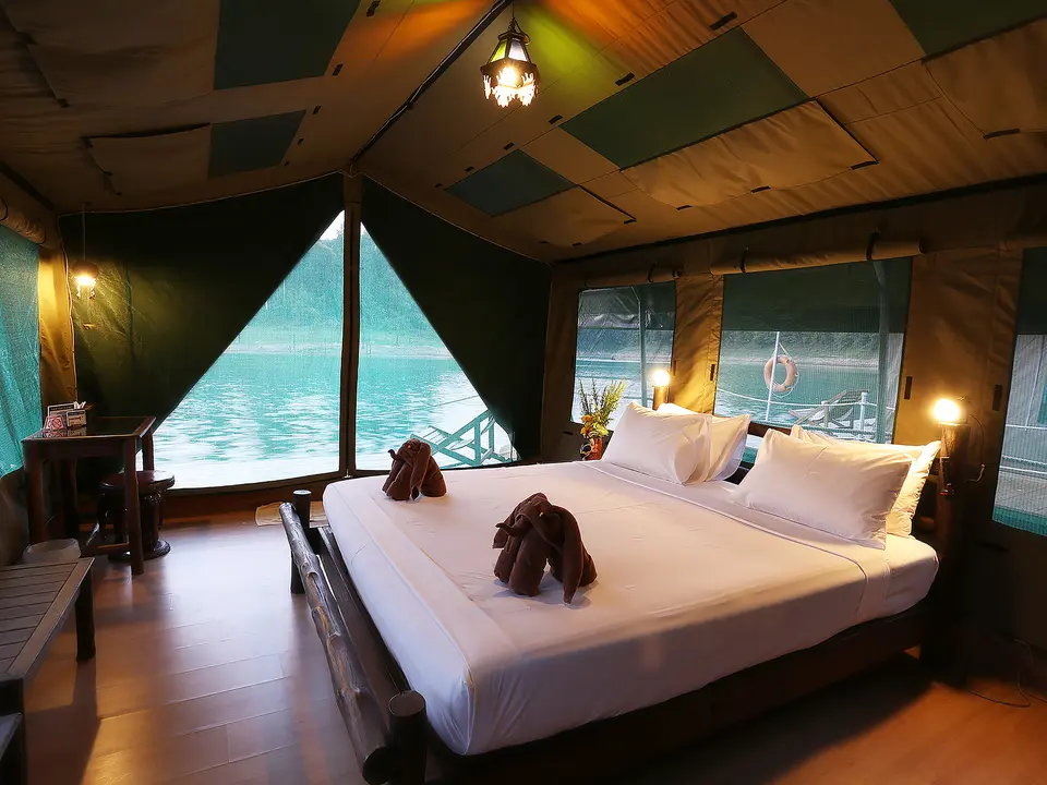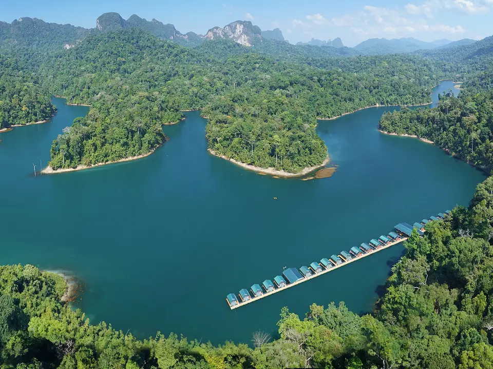 Deze zogeheten rafthouses, zijn gelegen op het Cheow Larn Lake. Dit gebied is alleen per boot te bereiken.