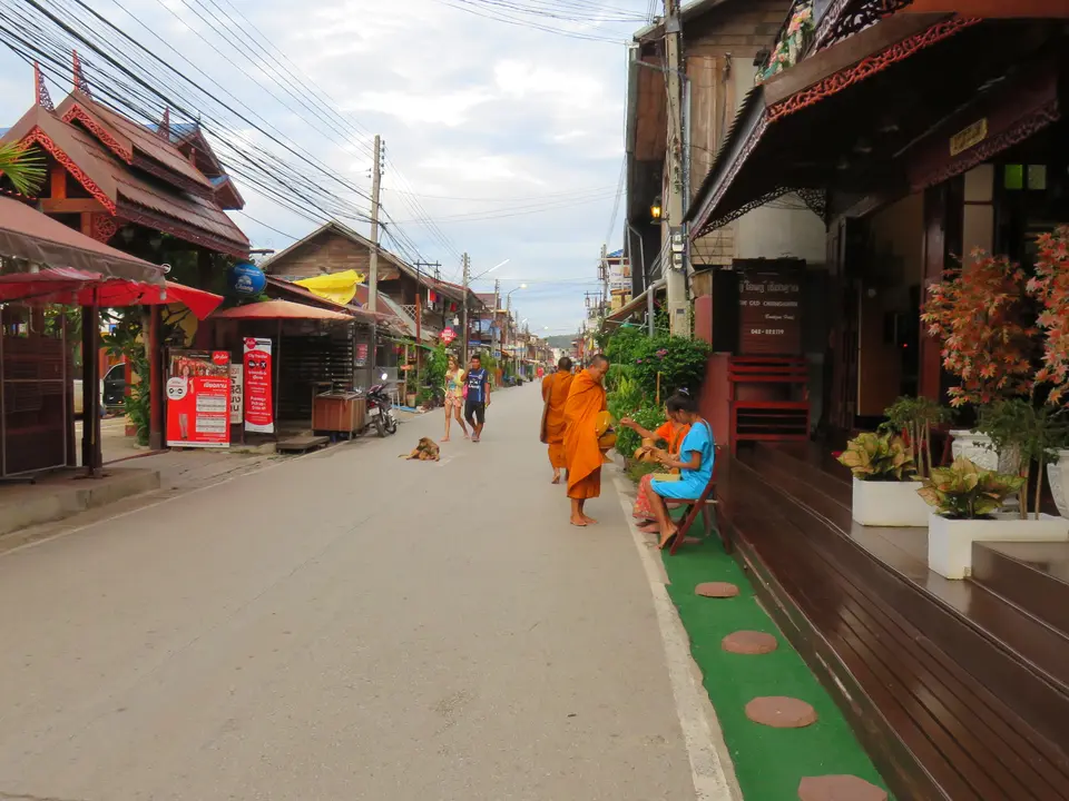 Direct in Chiang Khan, in de langgerekte straat met vele oude teak huizen, winkeltjes en restaurantjes. Een sfeervol plaatsje.