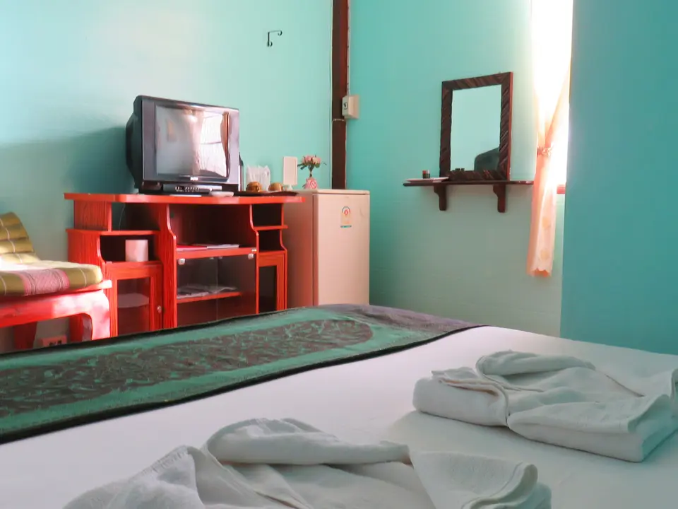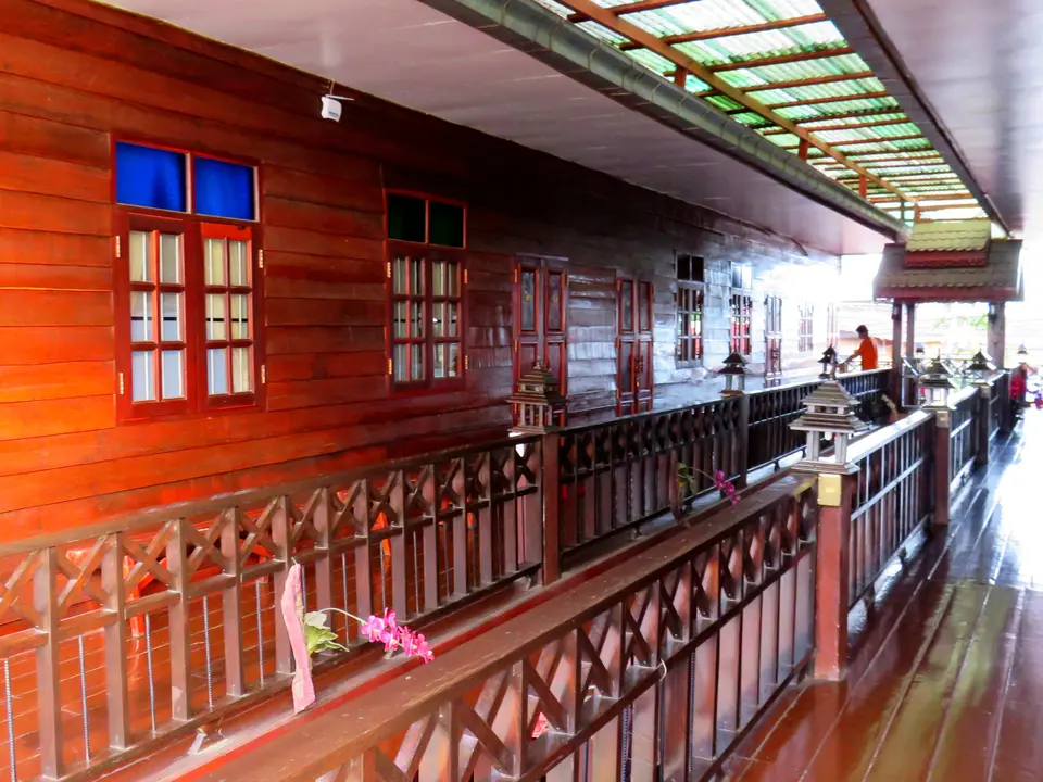 Schoenen uit! Maar dat zal je vaker tegen komen in deze regio. Het hotel is geheel gebouwd uit teakhout en beschikt over 20 knusse kamers, allemaal eenvoudig ingericht met een tweepersoonsbed of 2 éénpersoonsbedden. De badkamers zijn zeer eenvoudig met wastafel, toilet en douche. Voor het ontbijt ga je naar de overkant, naar het lokale restaurant. Ga voor een echt Isaan ontbijt of neem eieren en toast.