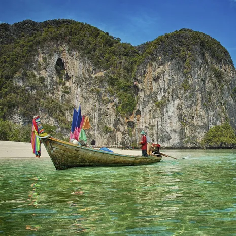 Ga per longtailboat (ja, zo’n typische van de plaatjes) naar Railay Beach. U stapt eenvoudig in Ao Nang op; vraag één van de bootsmannen.