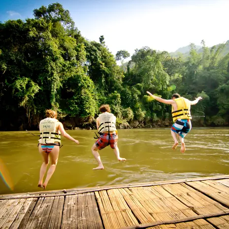 Op de River Kwai kunnen jullie in een wel heel bijzondere accommodatie overnachten. Een drijvende hut, gebouwd van hout en bamboe. Met een longtailboot varen jullie door de jungle naar het verblijf toe. Spring ook eens het water in en laat je mee stromen naar het einde van de accommodatie. Dat is nog eens leuk!