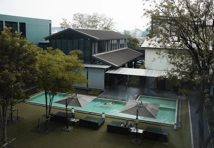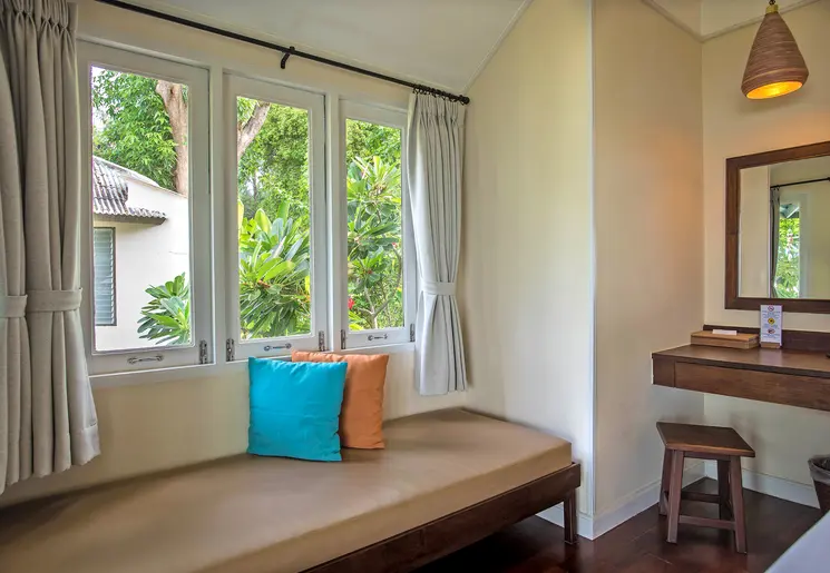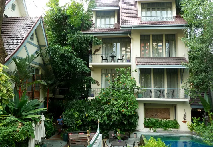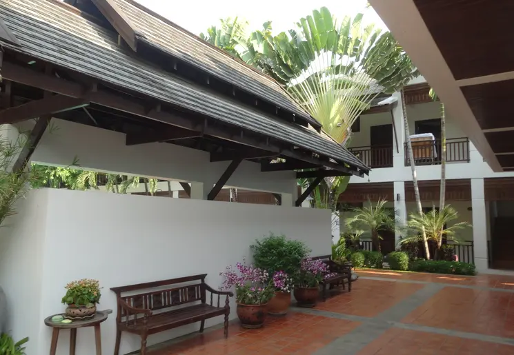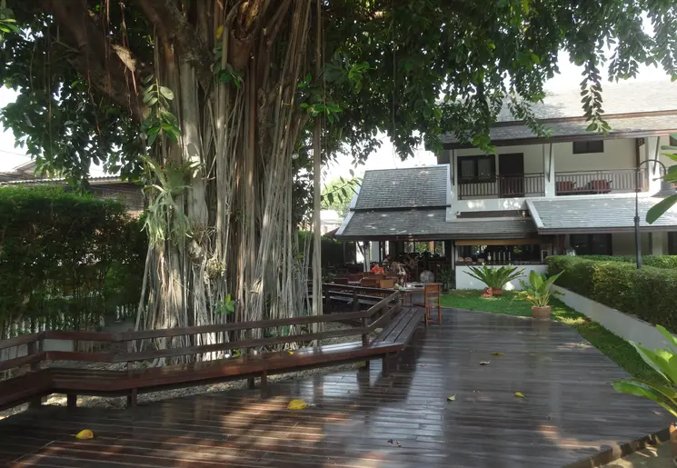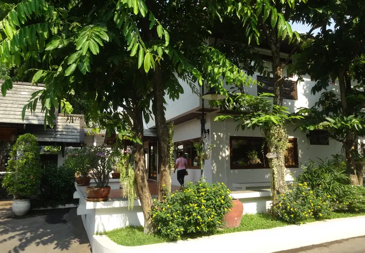 De ligging in een rustig straatje, net buiten het centrum van de stad is prettig. Al wandelend ben je toch zo op de nachtmarkt of bij gezellige restaurantjes. Er staat een grote Yang boom op het terrein die fijne schaduw biedt. Vooral ’s avonds is het erg romantisch tijdens een dinertje onder de boom.