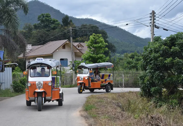 Het laatste deel van de route richting Chiang Mai leidt over het platteland met uitzicht over de rijstterrassen, boerderijtjes en velden met grazende buffels.