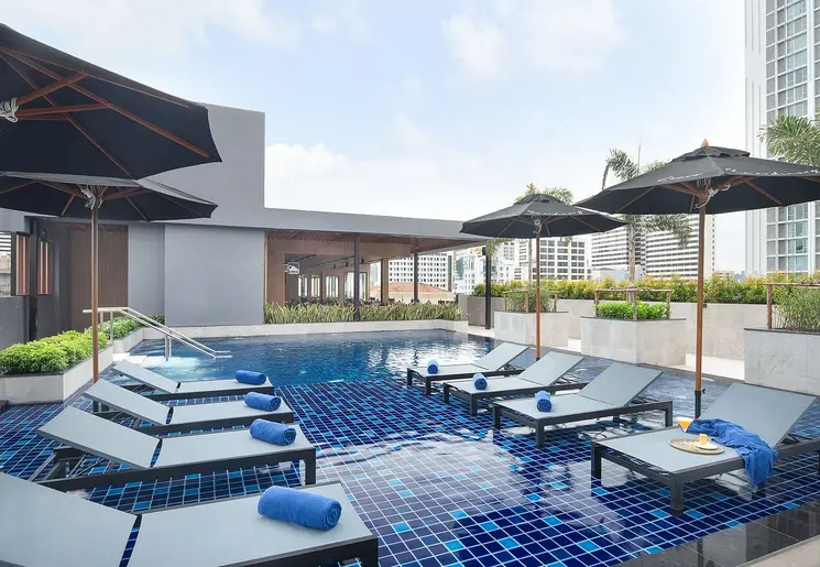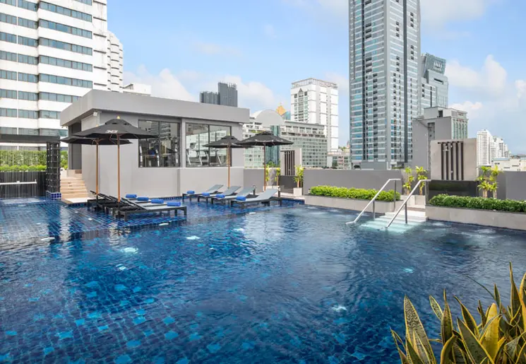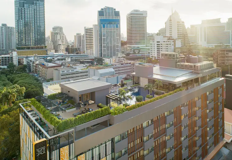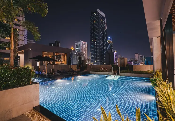 Eleven Hotel Bangkok ligt in de iconische wijk Sukhumvit Soi 11. Op het dak van de 9e verdieping kijk je uit op de stad en geniet je van een Thai Fusion diner.