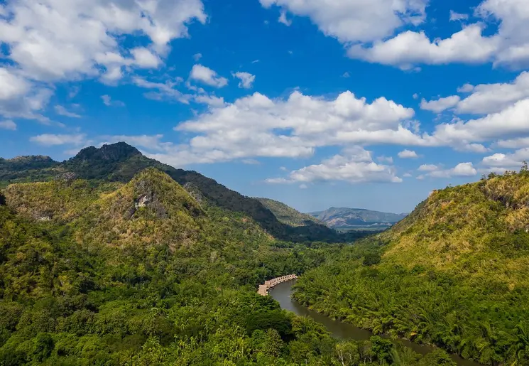 Als je de stad verlaat, rijd je de natuur in. Tussen de bergen en ondoordringbare jungle slingert de ‘River Kwai’. De nationale parken hier kenmerken zich door de vele watervallen en dichte jungle. Je kunt het gebied het beste vanuit een boot of kajak bewonderen. Makkelijk bereikbaar zijn de Erawan-watervallen. Maak een wandeling en neem een verfrissende duik in 1 van de 7 poelen. Verder stroomopwaarts ligt de Hellfire Pass, het zwaarste deel van de bouw van de Thai-Birmaspoorlijn. Op deze plek zijn veel gevangenen omgekomen en ter nagedachtenis aan de gruwelijkheden is er een museum gebouwd.