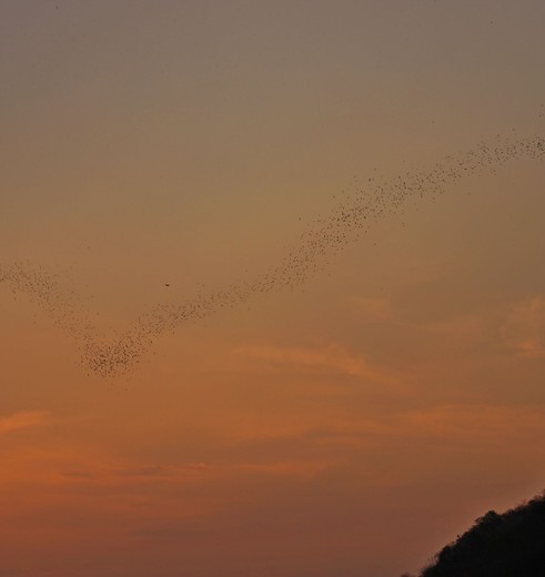 Vleermuizen in Khao Yai National Park. Aan het eind van de middag breng je een bezoek aan het thuis van duizenden, misschien wel honderdduizenden vleermuizen! Vlak voordat de zon ondergaat vliegen zij met gevaar voor eigen leven naar het nabijgelegen park, op zoek naar insecten. Eenmaal buiten de grot liggen roofvogels op de loer, die op hun beurt op zoek zijn naar een lekker hapje. Het is een indrukwekkend schouwspel; een ervaring om niet te missen. Als afsluiter breng je een bezoek aan een uitzichtpunt over het park.