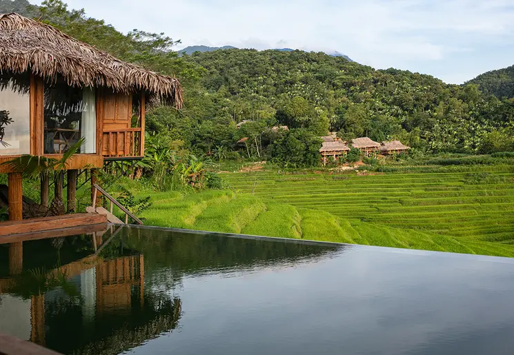 De natuur rondom je accommodatie nodigt uit om ontdekt te worden. Samen met je gids wandel je de vallei in, over smalle paadjes langs de rijstterrassen. Je doel is het fotogenieke dorpje dat aan de voet van de helling te zien is. Het pad stijgt af en toe, maar veel stukken zijn vlak of dalend. Je wandelt langs akkertjes, fruitboomgaarden, visvijvers en riviertjes. Sta af en toe stil om het uitzicht over de vallei en de omringende bergen in je op te nemen. In de velden zijn Vietnamezen aan het werk, vaak met de traditionele rieten punthoed op. Bespreek met je gids hoe lang je wilt wandelen.