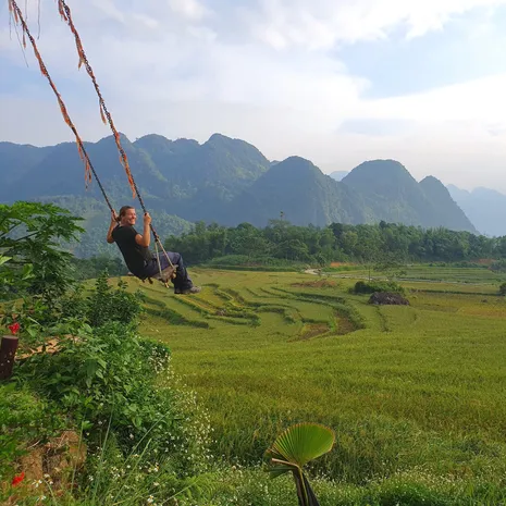 Tip: aan de rand van de lodge staat een schommel waarmee je boven de rijstvelden kunt schommelen.