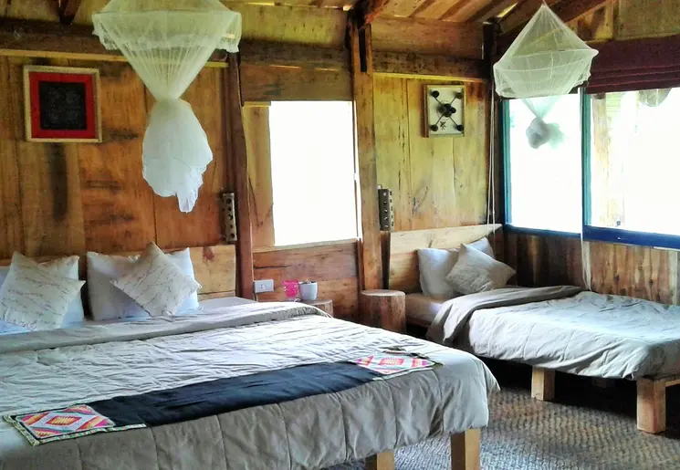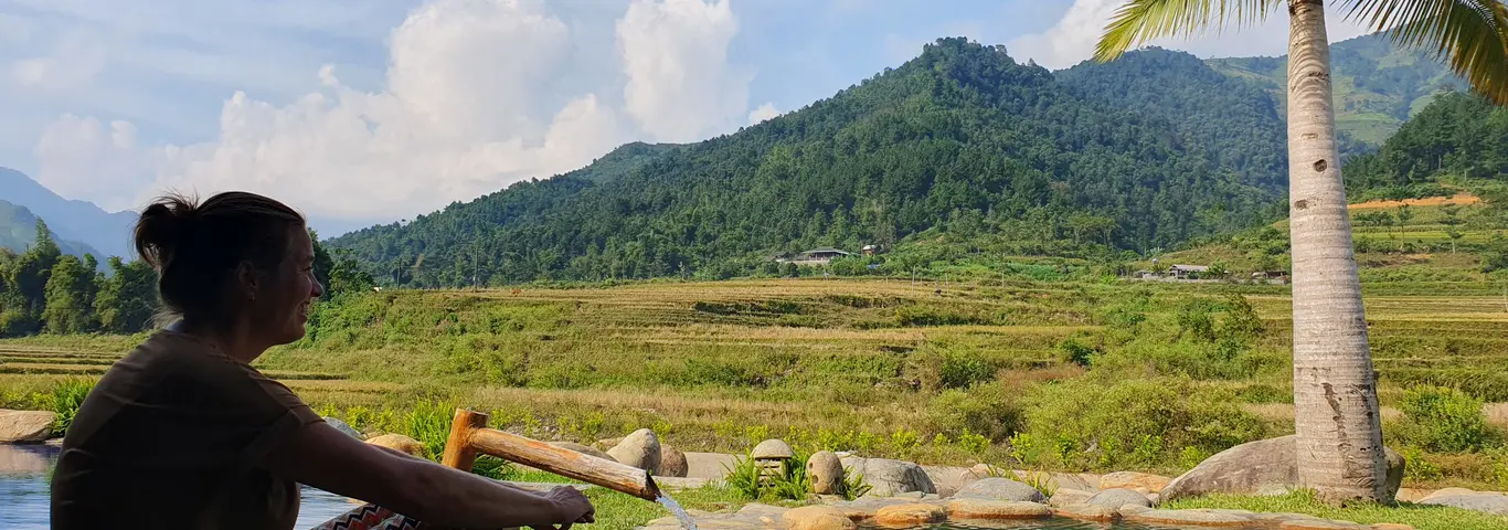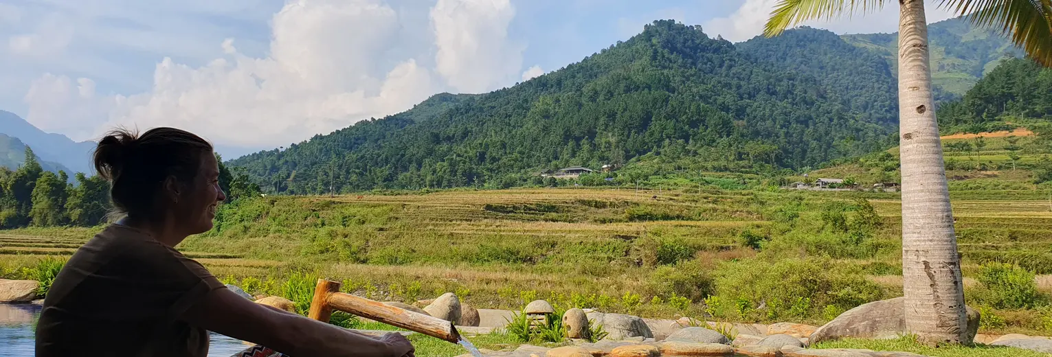 Op een paar uur rijden van Hanoi waan je je in een compleet andere wereld met frisse lucht, ongerepte natuur en fascinerende cultuur. De lodge bestaat voornamelijk uit natuurlijke materialen met rieten daken, bamboe interieur, houten meubels en buitendouches. Rijstvelden en smaragdgroene bergen sieren de omgeving.