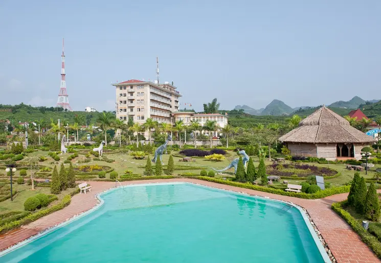 Gelegen aan de rand van het plaatsje Lai Chau met weids uitzicht over de rijstterrassen. Het hotel is gelegen op een groot stuk eigen grond waarop je een tuin met zwembad hebt aangelegd. Een groot, wat verouderd hotel.