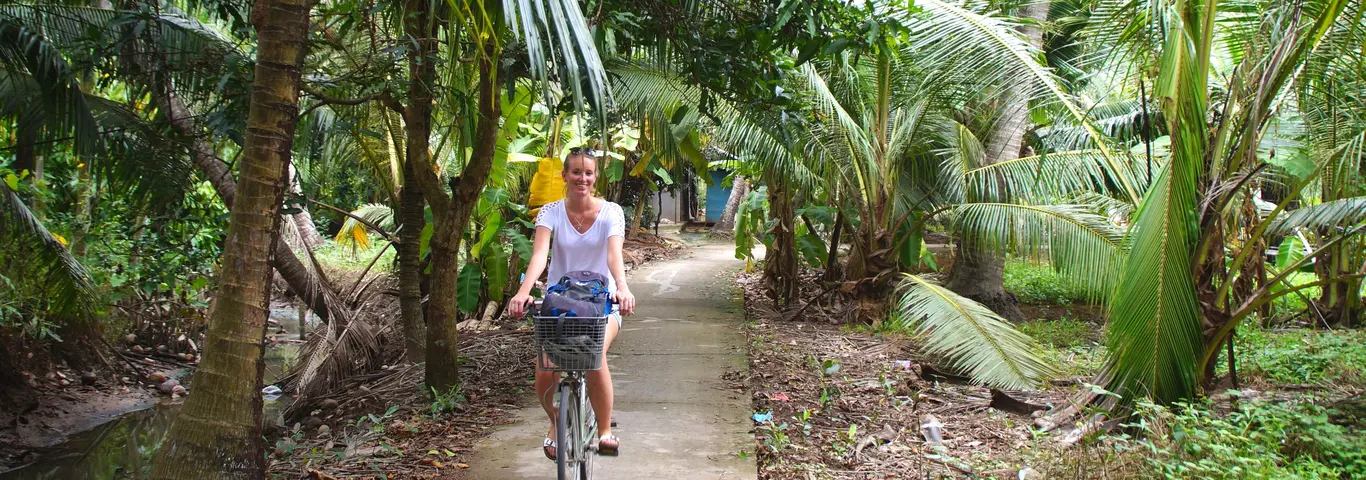 Fietsen gaat makkelijk over de vlakke paden die de eilanden in de Mekongdelta doorkruizen. Op rustig tempo trap je langs fruitboomgaarden, marktjes, tempels en door dorpjes. Van dichtbij zie je hoe de locals op, aan en van het water leven. De vele waterwegen steek je over via smalle bruggen of met wiebelige ferry’s. Je fietst van de ene naar de andere plaats in de delta. En jouw koffer? Die wordt achter je aan gebracht.
