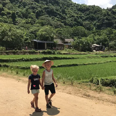 Verken samen met je kinderen de prachtige omgeving van Ninh Binh op de fiets of te voet. De omgeving van Ninh Binh is, op de karstbergen na, vrij vlak en daardoor uitstekend te verkennen. De fietsen in Vietnam zijn klein en geschikt voor iets oudere kinderen, maar voor de kleintjes zijn er kinderzitjes beschikbaar om te huren. Verken kronkelende paden, fiets langs schilderachtige rijstvelden en door charmante dorpjes. Maak wandelingen langs kabbelende beekjes en meren, en maak kennis met de vriendelijke lokale bevolking met hun iconische Vietnamese hoedjes. Jullie zullen niet kunnen stoppen met het maken van foto’s!