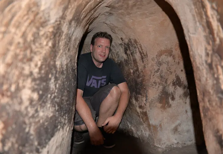 In de ochtend kun je een uitstapje maken naar de Cu Chi tunnels, dan ben je voor de lunch weer in de stad. Tijdens de beruchte Vietnamoorlog dienden de Cu Chi-tunnels als schuilplaats voor de Vietcong. De tunnels zijn bij elkaar zo’n 250 kilometer lang en bevinden zich op verschillende niveaus. Het is ongelooflijk wat daar gepresteerd is. De ingangen waren niet te zien. De gids schuift wat zand weg en er verschijnt een luikje waar de slanke Vietnamezen in verdwenen. Met levensgrote poppen laat men zien hoe het er ten tijde van de Vietnamoorlog aan toe ging in dit gebied. Een deel van de tunnels is ruimer gemaakt, zodat de ‘grote’ westerse toeristen er ook in passen.