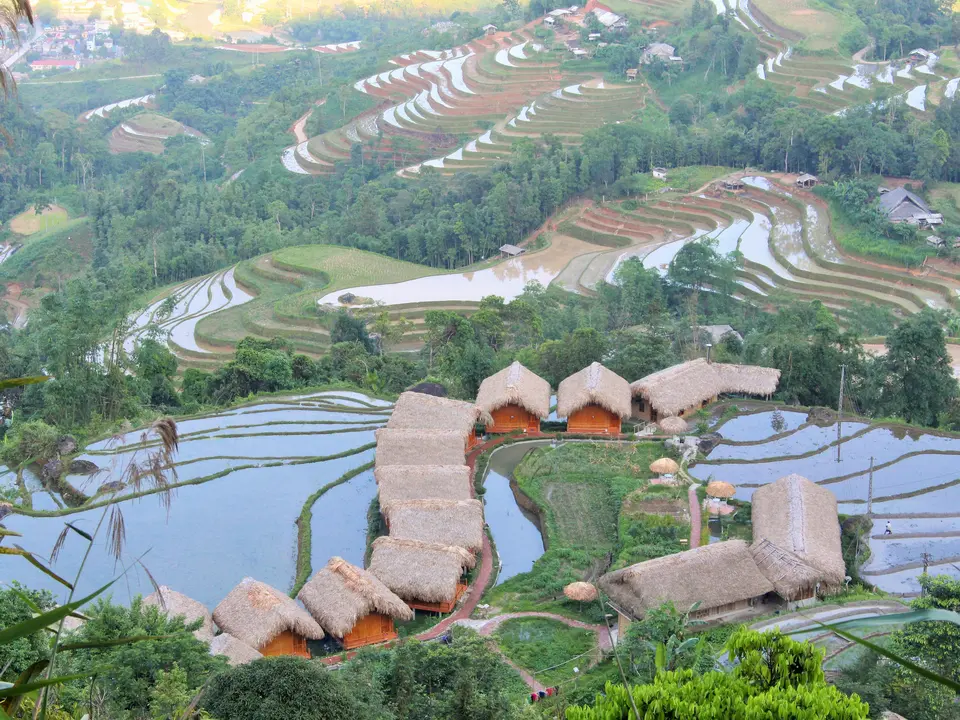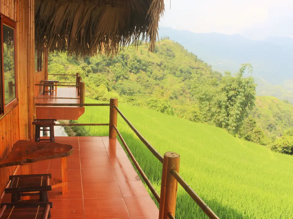 De Hoang Su Phi Lodge ligt letterlijk in de middle of nowhere. Overal waar je kijkt zie je hellingen met rijstterrassen. Vanaf het treinstation in Lao Cai rijd je in 4 á 5 uur naar de accommodatie, een bezienswaardige route door verschillende kleine dorpjes. Het dorp Ha Giang ligt op ongeveer 2 uur rijden.