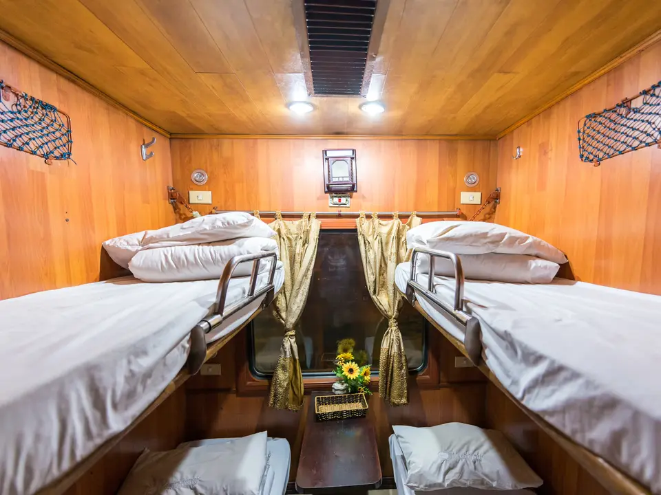 U zit en slaapt in een nette coupé voor 2 of 4 personen. Twee bedden (soft sleepers) aan weerskanten en in de 4 persoons ook nog boven elkaar. Als u niet slaapt, zit u op het bed. Omdat u ’s nachts reist worden de bedden niet ingeklapt als bank. Elk bed beschikt over een eigen nachtlampje in de coupé. Er is keuze uit coupé’s voor 2 of 4 personen. Indien u met z’n tweeën in een 4 persoons coupé slaapt deelt u deze met andere reizigers. De bagage kunt u onder het bed schuiven of in het pad zetten als u gaat slapen.