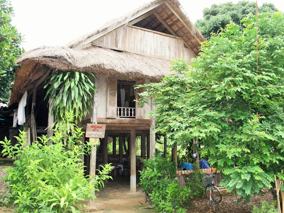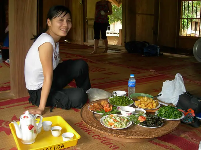Een homestay in Vietnam houdt in, slapen bij de mensen thuis. Het is wel al enigszins gemoderniseerd zodat je niet meer in de slaapkamer van de mensen zelf slaapt. Er zijn extra vertrekken gemaakt voor toeristen. Er is een grote ruimte waar je met meerdere mensen tegelijk kunt overnachten, De matrassen op de grond worden met gordijntjes van elkaar gescheiden voor wat privacy. Tegenwoordig is het ook mogelijk om een tweepersoonskamer te boeken. De matrassen, lakens en dekens zijn heel schoon en er hangen overal klamboes. Het sanitair deel je met de andere gasten. Het wordt schoon gehouden maar het blinkt niet echt. Er zijn vaak meerdere toiletten en (warme) douches. Je kunt het ook vergelijken met een eenvoudig guesthouse. Er wordt ’s avonds voor je gekookt wat vaak beter is dan je in een gemiddeld restaurant kunt verwachten. In de ochtend worden er pannenkoeken met honing en banaan geserveerd of heb je liever de Vietnamese noedelsoep als ontbijt, dat kan ook.