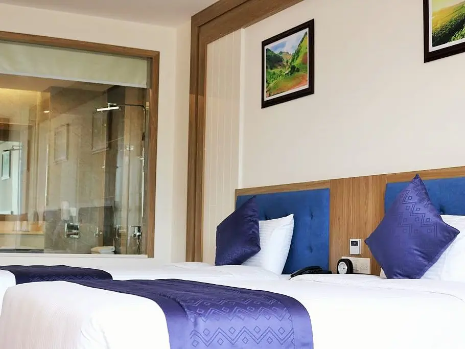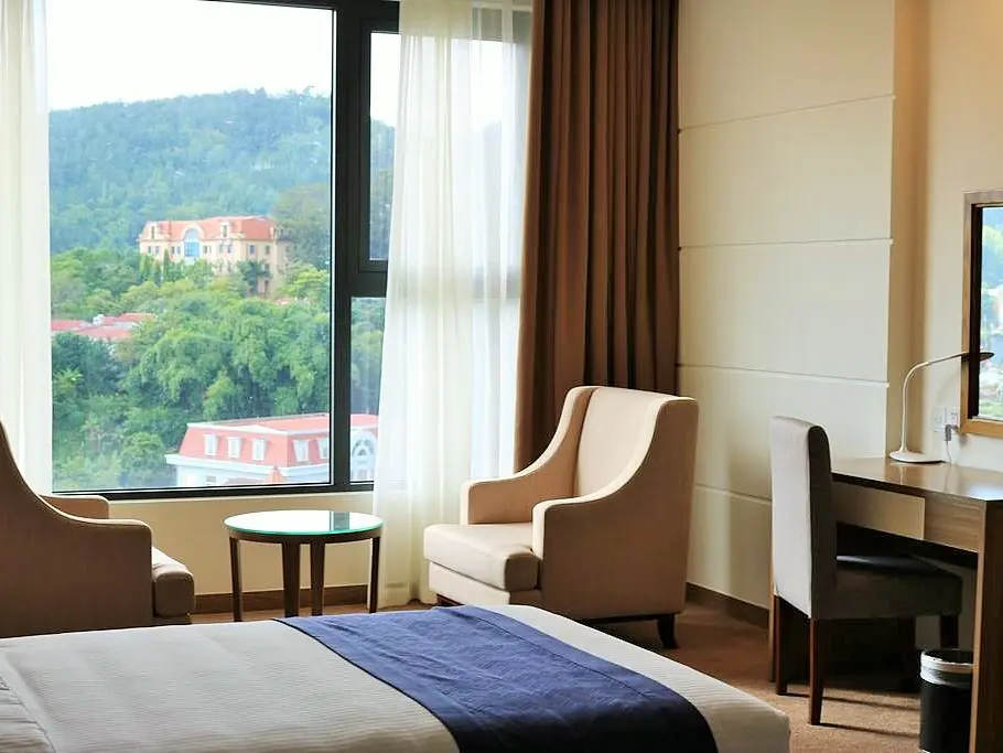 De ruime kamers zijn voorzien van airconditioning, televisie, minibar, koffie- en theefaciliteiten, kluisje, zitje en een badkamer met douche. Aan de ene zijde van het gebouw hebben de kamers door de ramen van vloer tot plafond uitzicht over het meer en de groene bergen, en aan de andere zijde over het stadje Son La. Vooral vanaf de bovenste etages is het uitzicht spectaculair.