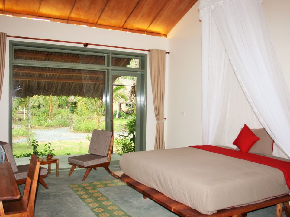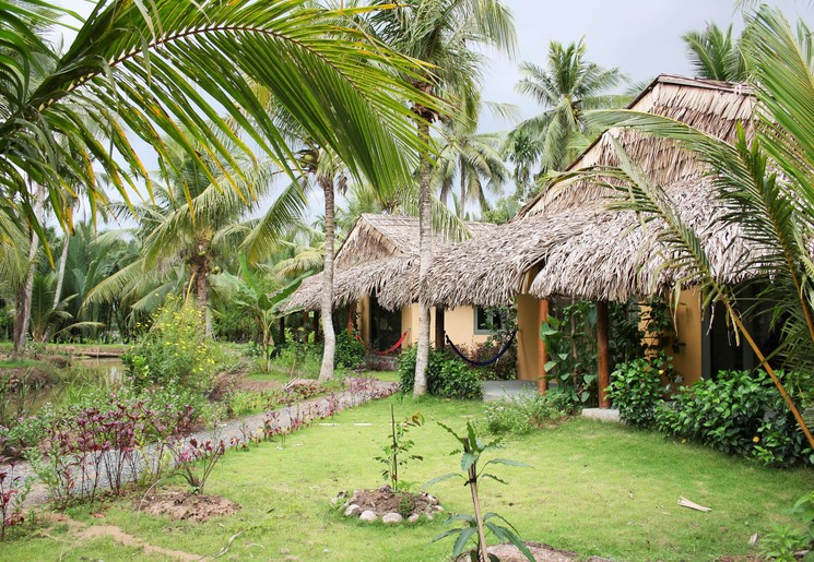 Een thuis in de delta! Je logeert bij een lokale familie, maar dan wel in je eigen sfeervolle bungalow in de grote, groene tuin. Een bijzondere ervaring om van zo dichtbij het leven van de deltabewoners mee te maken. ’s Avonds wordt er echt Vietnamees voor je gekookt door één van de familieleden. Er is een lekker zwembad om even af te koelen en een spa waar massages worden gegeven.