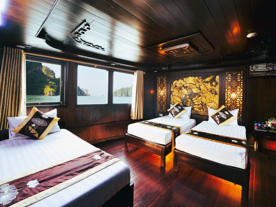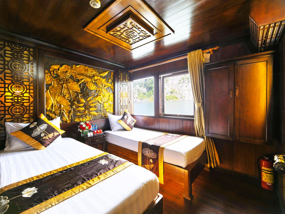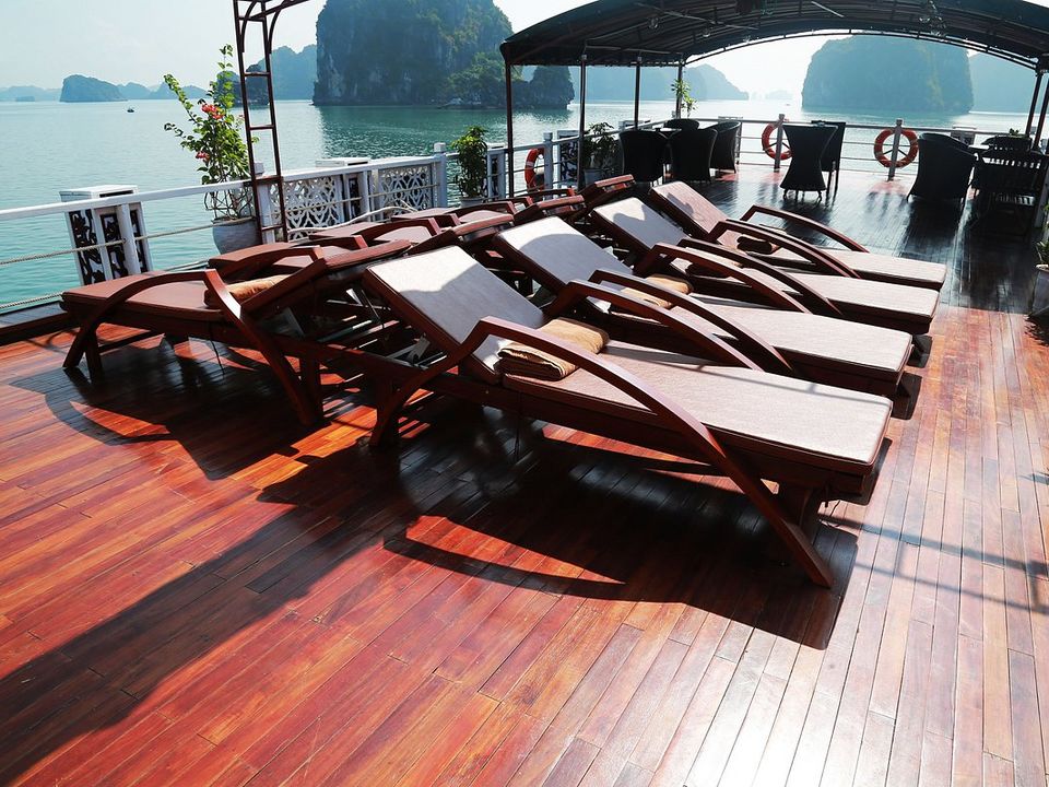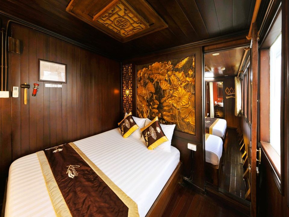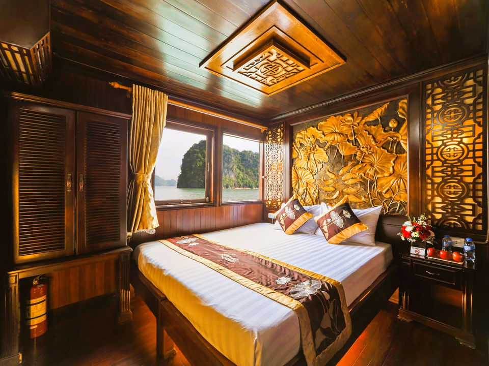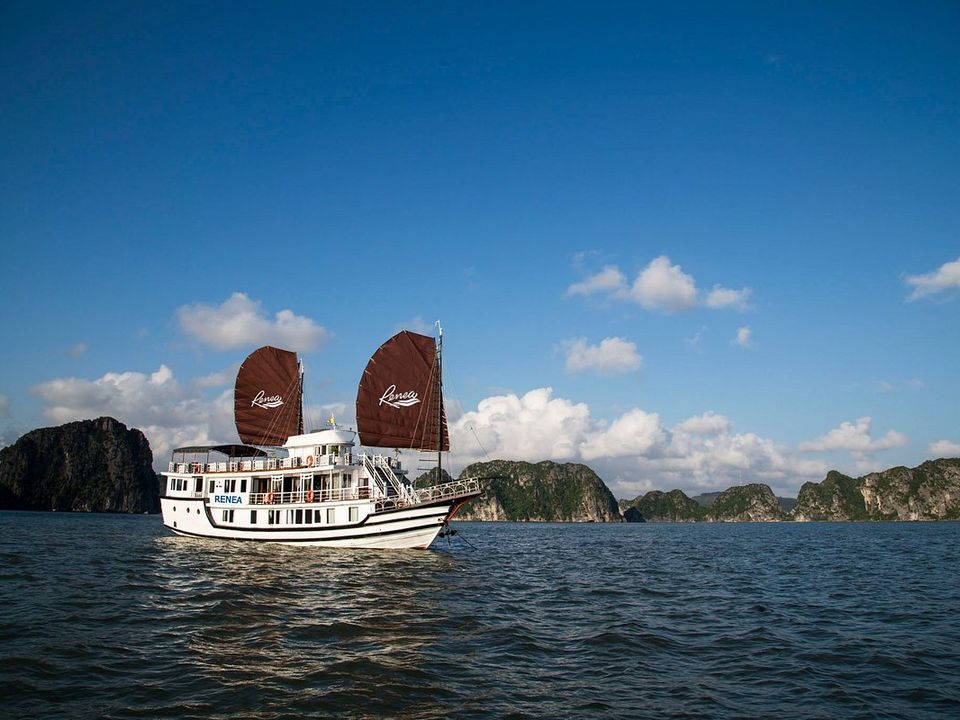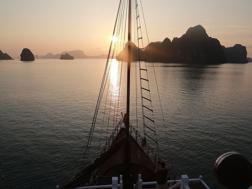 Zie de beroemde rotspieken van Halong Bay vanuit een andere hoek. Vaar met de, in traditionele stijl gebouwde junk, door dit bijzondere natuurgebied.