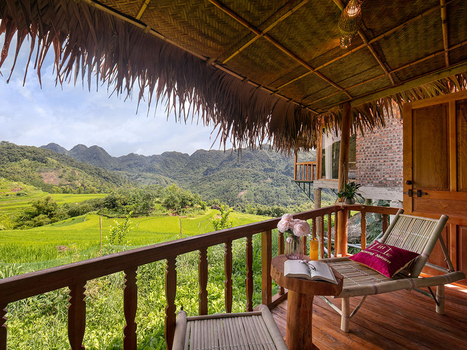 Ver weg van de stad, in de noordelijke bergen van Vietnam, ligt de Mu Cang Chai Ecolodge. De houten bungalows zijn gelegen rondom een heuvel in de vallei; op verschillende niveaus. Het pad naar het restaurant op de top van de heuvel is best steil, dus het kan vanaf je bungalow een pittige klim zijn. Vanaf het balkon van je bungalow heb je uitzicht op de beroemde rijstterrassen; een mooiere ligging...
