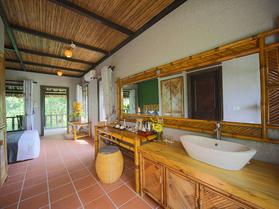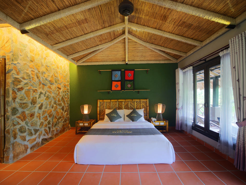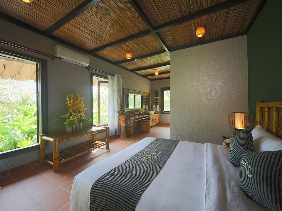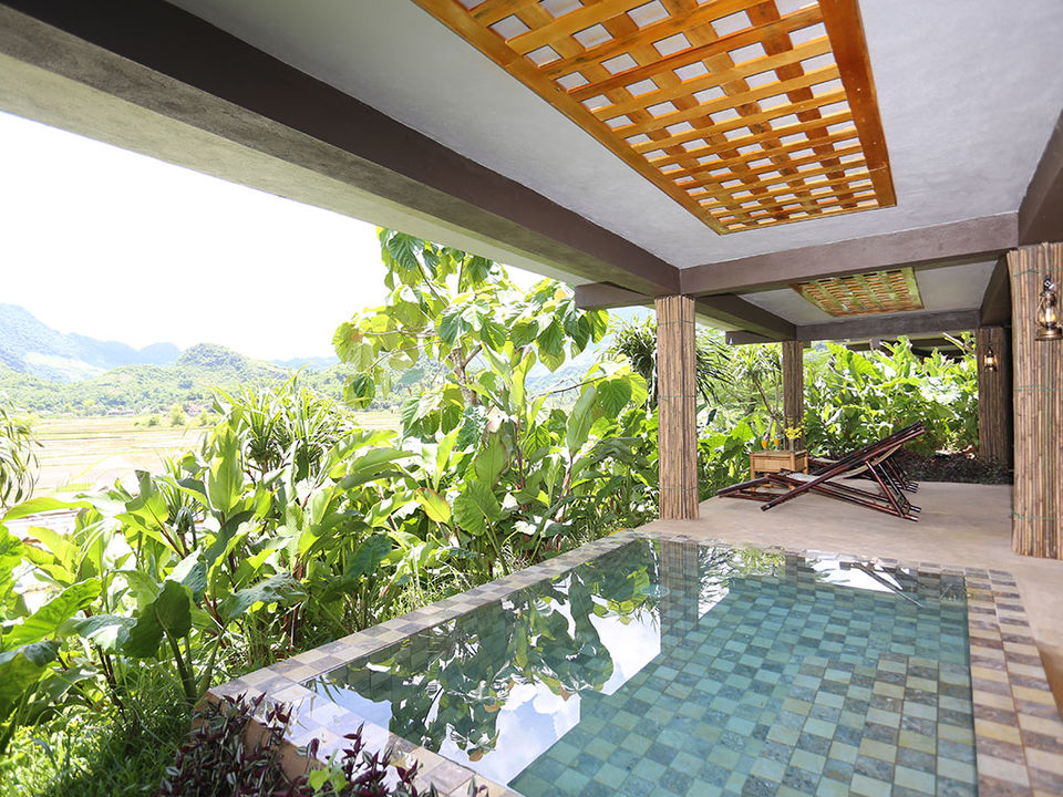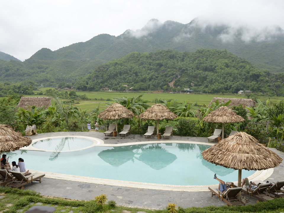 Op een paar uur rijden van Hanoi waan je je in een compleet andere wereld met frisse lucht, ongerepte natuur en fascinerende cultuur. De lodge bestaat voornamelijk uit natuurlijke materialen met rieten daken, bamboe interieur, houten meubels en buitendouches. Rijstvelden en smaragdgroene bergen sieren de omgeving.