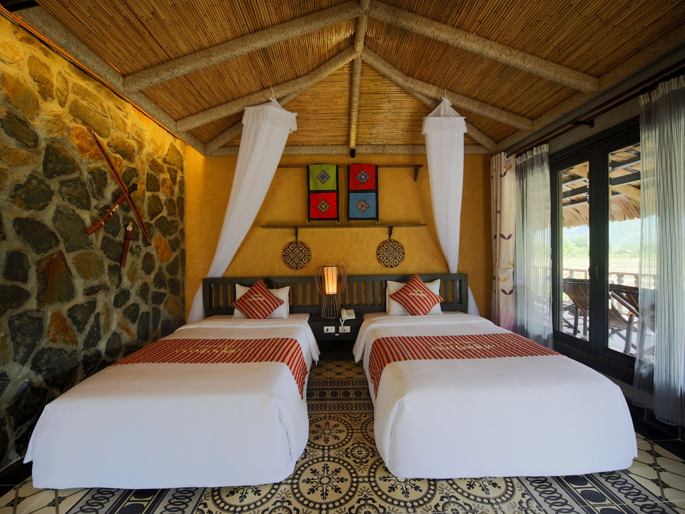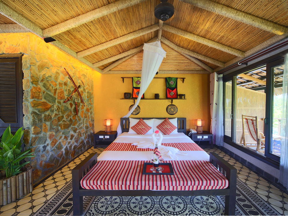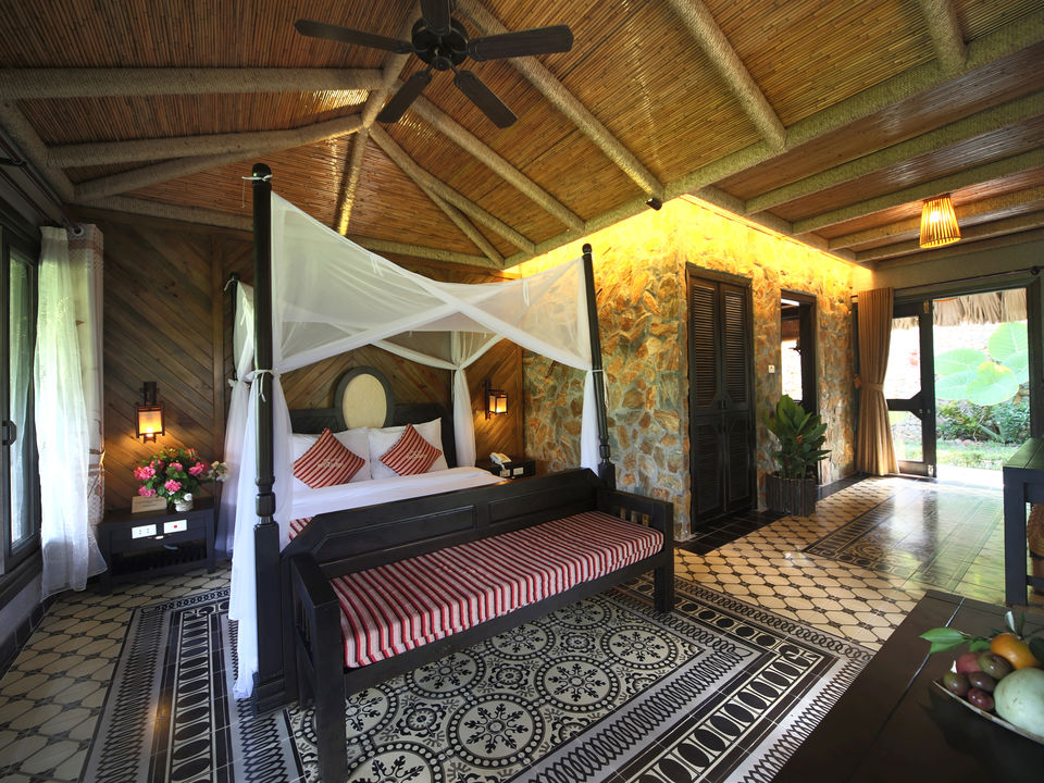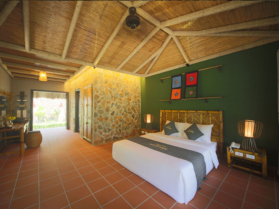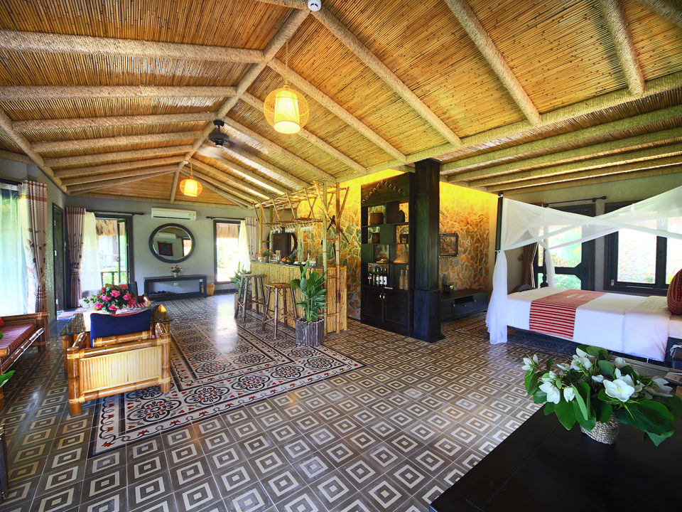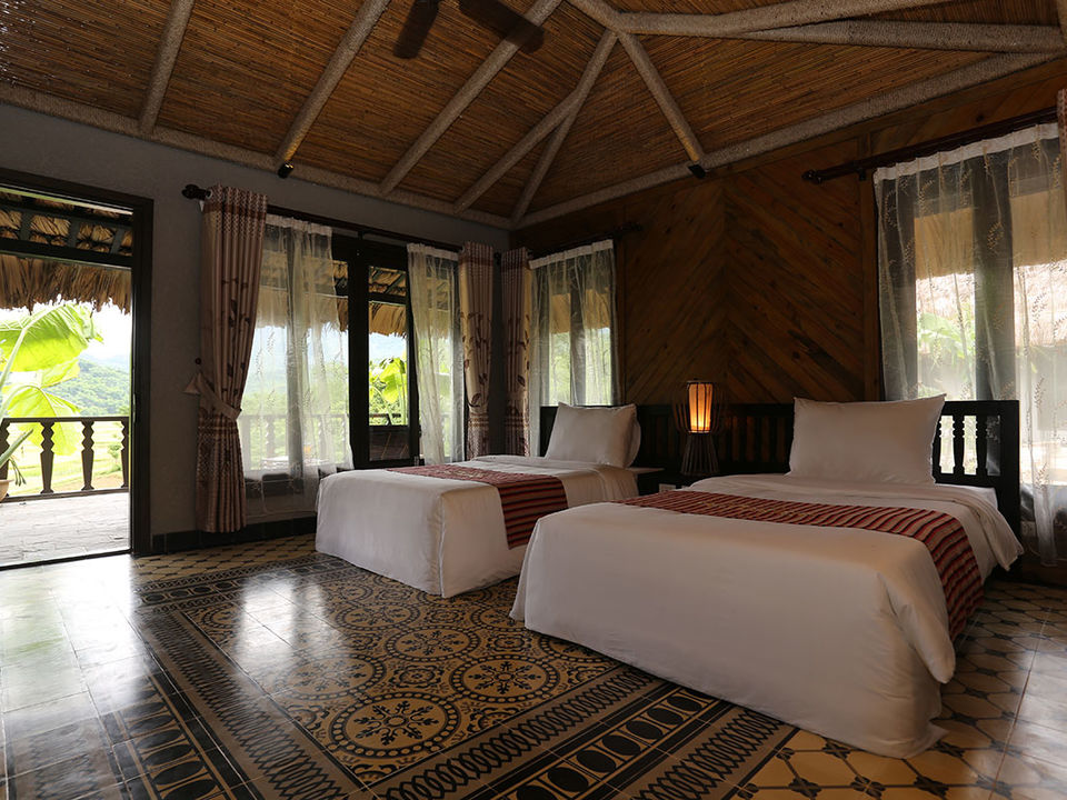 Op een paar uur rijden van Hanoi waan je je in een compleet andere wereld met frisse lucht, ongerepte natuur en fascinerende cultuur. De lodge bestaat voornamelijk uit natuurlijke materialen met rieten daken, bamboe interieur, houten meubels en buitendouches. Rijstvelden en smaragdgroene bergen sieren de omgeving.