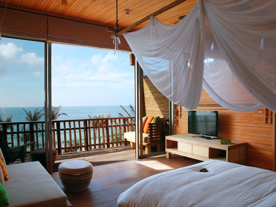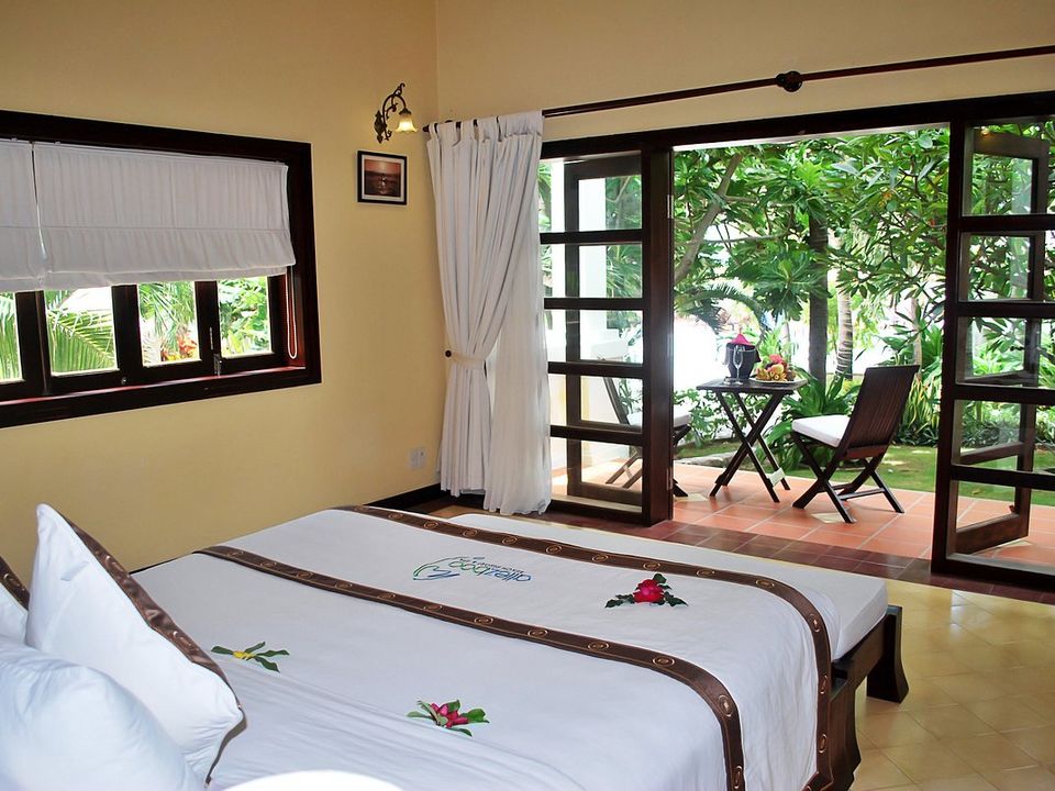 Dit mooie boutique resort is een echte aanrader! Bij binnenkomst in de ruime lobby kijk je direct de prachtige tuin in. Het resort ligt aan zee met privéstrand. De kamers, villa’s, restaurant en andere bijgebouwen zijn zeer smaakvolle ingericht en allen bedekt met een leuk rieten dak. Allez Boo is een van de beste keuzes voor een luxe strandvakantie in Mui Ne.