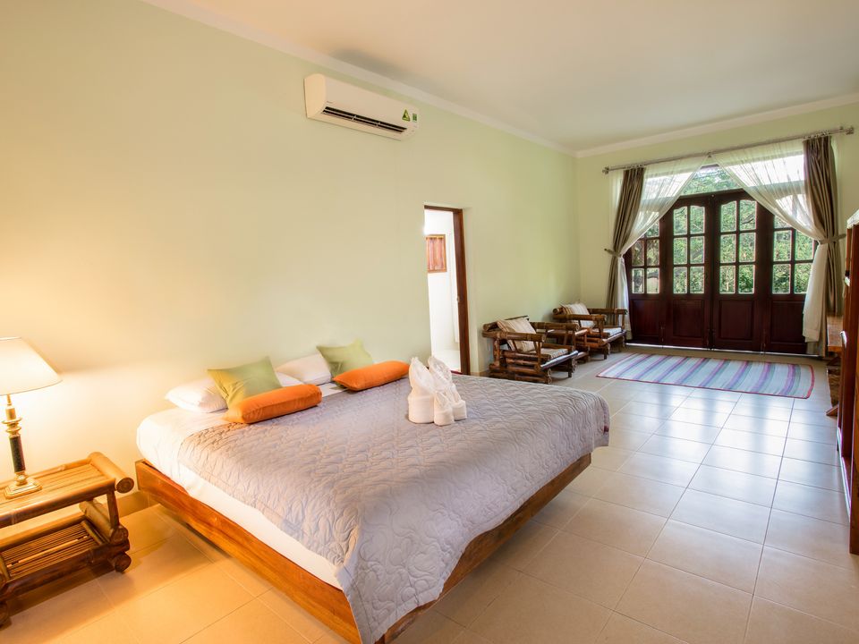 In het Nationale Park Nam Cat Tien gelegen. Hierdoor kun je ’s morgens en ’s avonds na zonsondergang excursies in het park maken. De staff is zeer bevlogen!