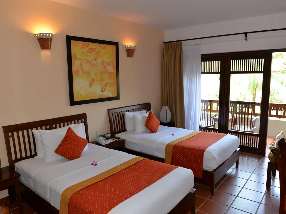 Het resort beschikt over 214 kamers. Maar omdat de kamers zijn verdeeld over meerdere gebouwen, die maximaal twee verdiepingen hebben, een soort wooneenheden oogt het gemoedelijk en minder groot. Het geheel ligt in een prachtige tuin en is ruim opgezet. Er zijn 7 verschillende kamertypen: superior room (gardenview of seaview), deluxe room (gardenview of seaview), bungalow (gardenview of beachfront) en een suite room. De superior en deluxe kamers liggen in gebouwtjes. De bungalow met beachfront beschikt over een badkamer die buiten gelegen is, erg leuk!