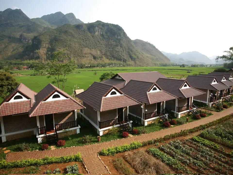 De bungalows zijn zeer rustig gelegen, wat verder weg van het stadje Mai Chau. Voor het diner ben je op het restaurant van het hotel aangewezen. Doordat andere hotelletjes meer aan het begin van de vallei liggen zijn er hier minder toeristen.