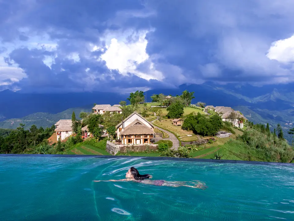 De Topas Eco Lodge beschikt over een groot infinity-zwembad met prachtig uitzicht over de omgeving. Het restaurant is gebouwd in de vorm van een traditioneel Tay huis. Het eten is bereid volgens traditioneel recept van de etnische minderheden uit de omliggende dorpen.