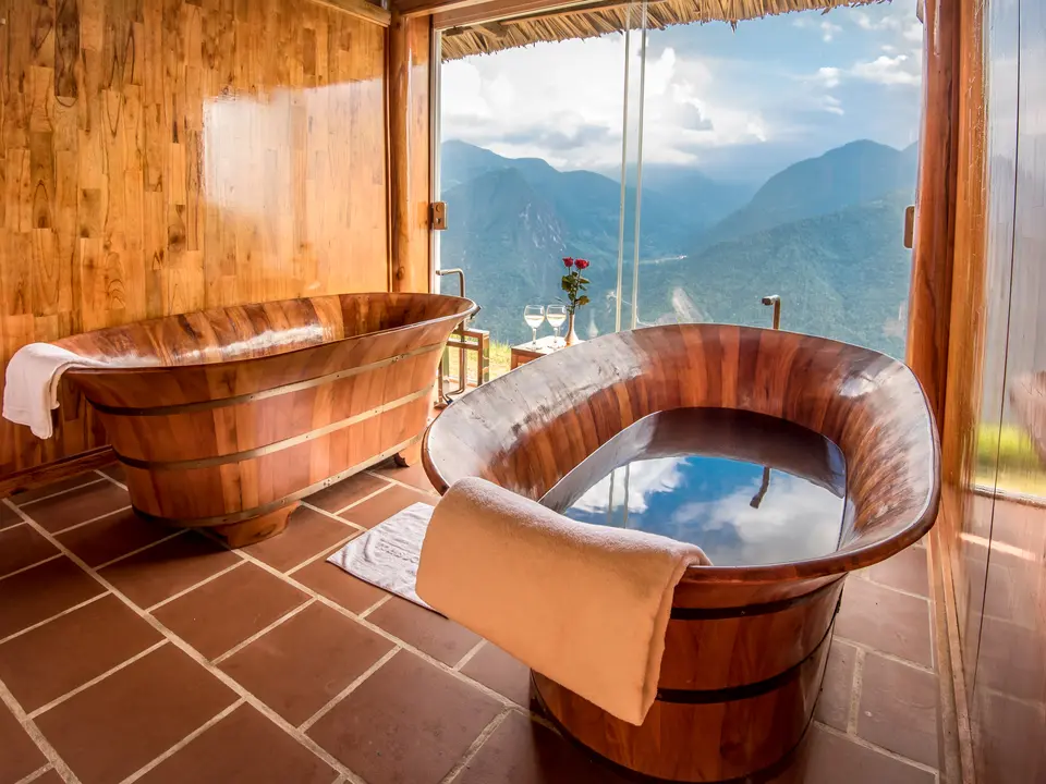 Deze lodge heeft een schitterende ligging, je kijkt uit over de schilderachtige Muong Hoa vallei. Hoewel de naam: Topas Eco Lodge, doet vermoeden is het een ‘gewone’ accommodatie. Het ligt zeer rustig en afgelegen op ongeveer 45 minuten rijden van Sapa.
