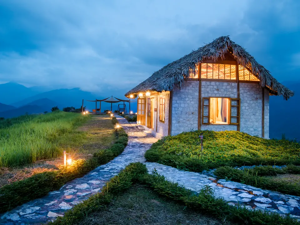 Alle 25 bungalows zijn gebouwd van natuurlijke materialen zoals lokaal gedolven wit graniet, hardhout en een palmrieten dak. Ze beschikken over een tweepersoonsbed of twee aparte bedden en een eigen badkamer. Het interieur is erg sfeervol en karakteristiek, maar eenvoudig. Er is geen verwarming, geen airconditioning, TV of minibar. Verlichting en warm water worden geleverd door zonne-energie, dit kan dus betekenen dat het er niet is. De bungalows zijn in een hoefijzermodel gesitueerd op een heuvel. En het allermooiste… elke bungalow heeft een privé veranda/balkon met een zitje waar je werkelijk een prachtig uitzicht hebt over de heuvels, de vallei en de dorpen van de Tay en de Rode Dao minderheden.