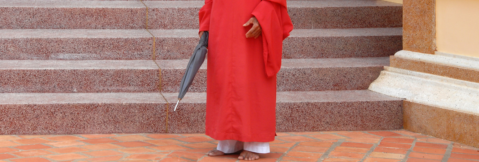 In wapperende gewaden komen zo tussen half 12 en 12 uur de honderden volgelingen van de Cao Dao-godsdienst aangefietst bij de kerk in het zuiden van Vietnam: in hun mooie, witte, typisch Vietnamese gewaden. Zorg dat u er dan bent, u maakt de mooiste foto’s, ook in de kerk. De dienst begint om 12 uur en als u wilt mag u er bij zijn. De priesters hullen zich in het rood, blauw en geel. Motto: ‘God en de Mensheid, Liefde en Gerechtigheid’. Kenmerk: het Alziend Oog!