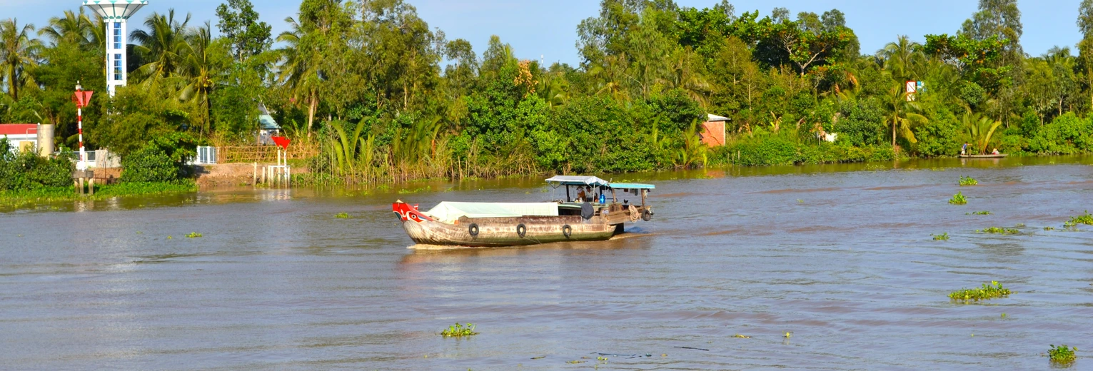 De dag begon al meteen goed met een heerlijk uitgebreid ontbijtbuffet op het terras van het strategisch gelegen Victoria Hotel. Het aroma van mijn versgemalen koffie verloor het al snel van de uitbundige activiteit op de Mekong-rivier, dat zich pal voor mijn neus afspeelde. Bootjes van allerlei pluimage voeren langs; sampans, veerpontjes, vrachtboten en rijstschoeners, al dan niet met diesellucht en knetterende motor. Geen opsmuk, gewoon het alledaagse ontwaken van een bedrijvige rivierstad. Het meisje van de hotelreceptie bracht me uit mijn ontbijtroes om me erop te attenderen dat de lokale gids in de lobby op me wachtte. O ja, das waar ook, deze ochtend ga ik een excursie maken naar het Tra Su Cajuput Forest, een nationaal park in Vietnam.