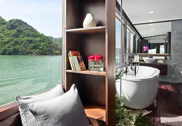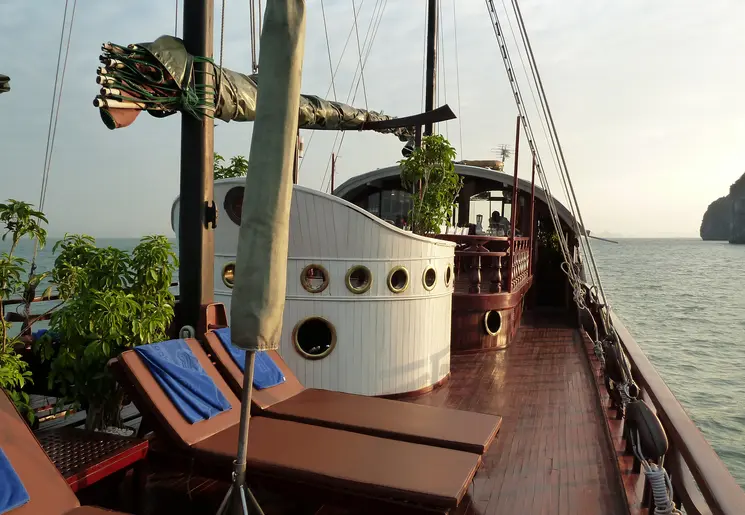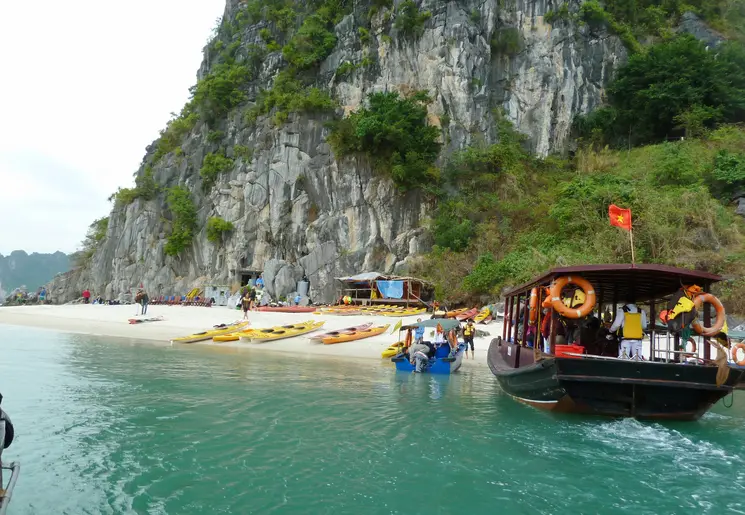 Als het weer het toelaat, ontbijt je deze ochtend vroeg op het zonnedek. De boot vaart in de tussentijd naar een van de grootste drijvende dorpjes in de baai. Hier woonden voorheen maar liefst 70 gezinnen. Nu zijn er nog enkel een paar fishfarms; drijvende huizen tussen de karstrotsen met netten vol vis eronder. Je wordt met een roeibootje door het dorp gevaren en stapt uit bij een parelkwekerij. Eenmaal weer aan boord van het schip vaar je terug naar de haven van Bai Tu Long onder het genot van een vroege lunch.