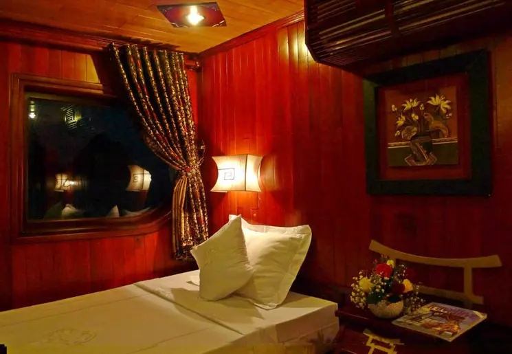 Een hoogtepunt tijdens je reis: varen door Halong Bay met de Indochina Junk! Rond het middaguur vertrekt het schip vanuit Bai Tu Long. Deze baai behoort ook tot de beroemde Halong Bay, maar op deze route varen minder schepen. Tijdens de lunch vaart de jonk richting de fameuze rotspieken. Overal om je heen rijst het fantastische karstgebergte op uit zee. In Halong Bay wordt aangelegd om een grot of strandje te bezoeken. Met een klein bootje (tender) word je er naartoe gebracht. Je kunt ook gaan kajakken. De boot gaat voor anker op een vaste plaats in de baai en deint rustig mee op bewegingen van de zee. Voor het diner is er nog een mini-kookworkshop. Met mazzel dineer je vanavond op het dek onder de sterrenhemel.