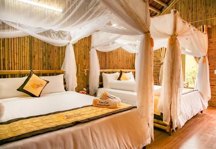 Ninh Binh wordt ook ‘Halong Bay op het droge’ genoemd. Niet zonder reden; het groen begroeide karstgebergte rijst steil uit het landschap met rijstvelden en waterwegen op. Een boottochtje door dit gebied is een must. In het stadje Tam Coc is er van alles te beleven, er zijn heel veel restaurantjes, kleurrijk verlichtte bars, massagesalons, winkeltjes, én middenin het stadje is de opstapplaats voor boottochtjes. Buiten het stadje overheerst de rust. Hier liggen rijstvelden doorkruist door smalle landwegen. Overal is water, van visvijvers tot riviertjes. Eenden zwemmen rond, buffels staan te grazen in de velden. Hoog in de karstbergen bevinden zich toegankelijke grotten, zoals de Mua Cave en Bich Dong.