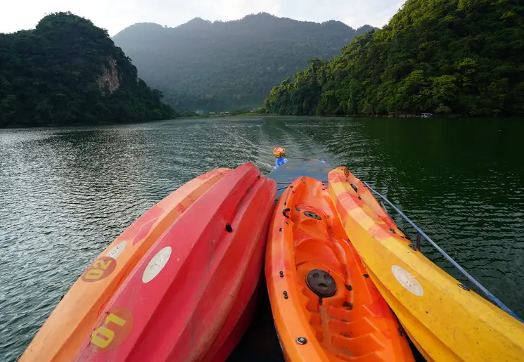 Vanuit Ha Giang reis je verder naar het oosten. Een lange rit van ongeveer 7 uur. Leun achterover en neem de omgeving in je op. De route volgt deels een rivier. Op de berghellingen zie je theeplantages. Vanaf Bac Kan lijkt het nog mooier te worden. Rijstvelden, snelstromende riviertjes, flinke bamboebossen en karakteristieke hangbruggen kleuren de omgeving. Na een lange dag in de auto sta je aan de oever van Ba Be Lake. Hier logeer je in een klein dorp middenin de natuur. Deze middag maak je al een wandeling met je gids door het dorp om de huizen op palen van dichtbij te bewonderen en de vriendelijke Tay te ontmoeten.
