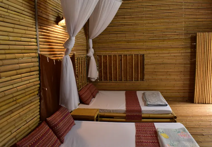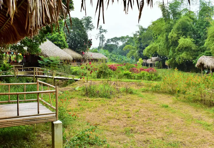 De mensen leven op de eerste verdieping. Vroeger stond het vee onder het huis in de schaduw. Vraag je gids te stoppen om even rond te wandelen in zo’n Tay-dorp. De mensen hier zien niet veel toeristen en zijn gastvrij. Voor je het weet zit je aan de thee met het gezinshoofd.