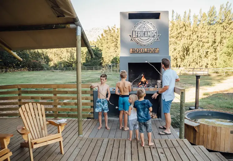 Overnachting in Africamps at Doolhof, 3*, nabij Wellington.