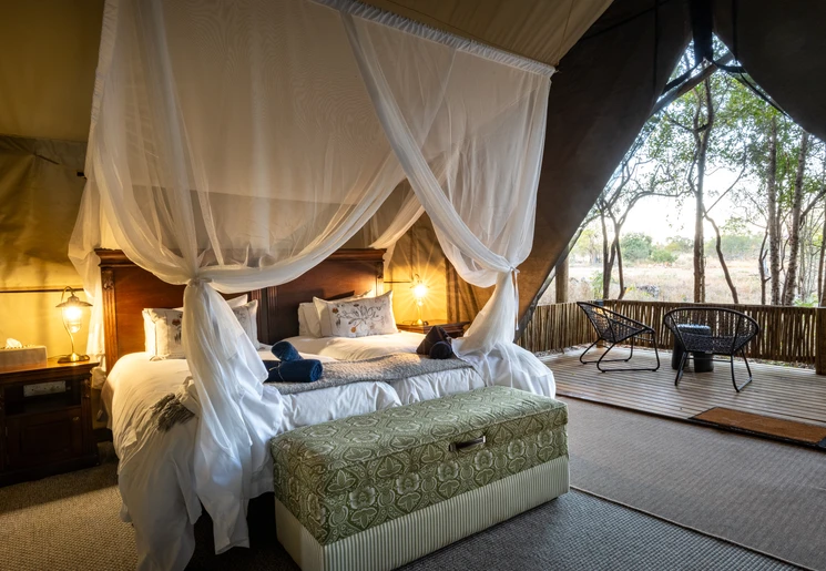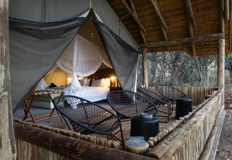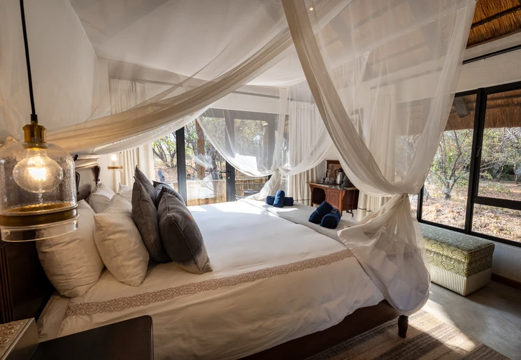 Jullie dag begint vroeg met een ochtendsafari. Heerlijk om de frisse, soms toch wel koude, ochtendbries op te snuiven. In de jeep liggen dikke dekens, die jullie het eerste uur warm houden. Zodra echter de ochtendzon doorkomt, zijn de dekens niet meer nodig. Na een paar uur rijden door de bush wordt er op een mooie plek gestopt voor koffie/thee en traditionele rusk. Bij terugkomst in de lodge wacht een uitgebreid ontbijt. De rest van de dag is het tijd voor een boek, een spelletje of een bommetje in het zwembad. Met een verrekijker speuren jullie vanaf het panoramadek naar wild. Na koffie/thee en wat lekkernijen stappen jullie aan het einde van de middag weer samen met je ranger in de open jeep en begint de speurtocht naar wild opnieuw. Is dat nu een spoor van een troep leeuwen? Als het weer het toestaat, staan de tafels voor het diner onder de sterrenhemel in de boma rondom een knapperend kampvuur.