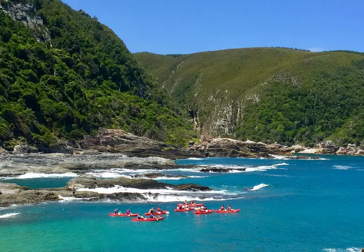 Tsitsikamma National Park biedt vele verschillende manieren om de natuur te beleven. Rijd naar Storm Point en maak een wandeling over houten vlonders langs de baai naar de monding van de Stormsrivier, waar een wiebelende hangbrug jullie veilig over het woelige water naar Big Tree, de oudste en grootste geelhoutboom, brengt. Slinger als Tarzan door het woud tijdens een Canopy tour of stap in een kajak om het regenwoud en inheems bos vanaf het water te bewonderen.