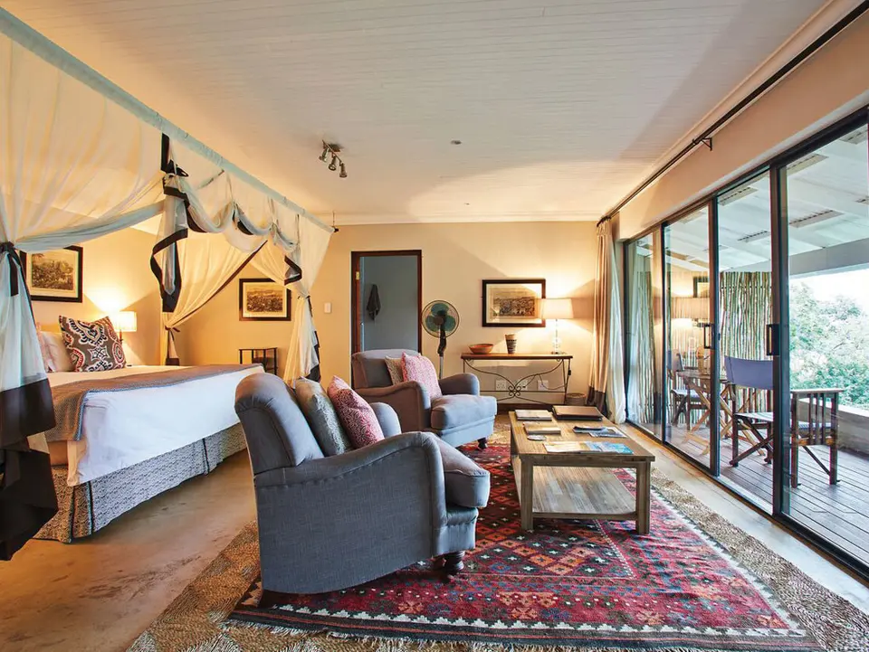 Een unieke overnachtingsplek bij The Battlefields. Bezoek het museum waar veel informatie te vinden is uit deze roerige tijden. Alle kamers in dit kleinschalige luxe onderkomen zijn klassiek ingericht, de badkamer heeft een binnen- en buitendouche. Vanaf de veranda kijk je uit op de Buffalorivierkloof. Na een mooie dag biedt het zwembad een welkome verkoeling. Kortom een historische plek waar het aan niets zal ontbreken.